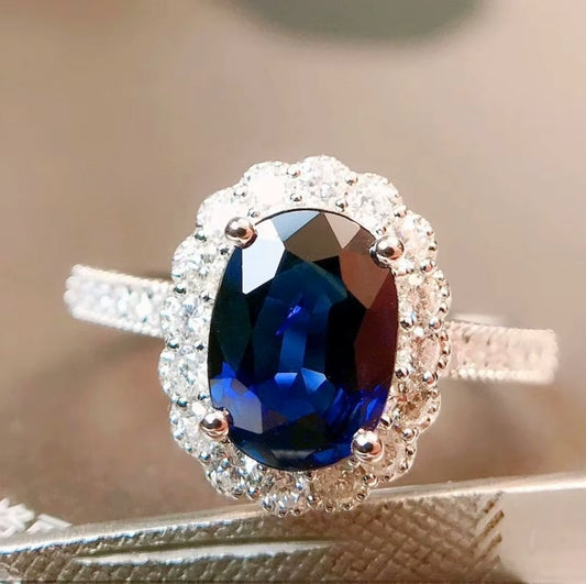 Natural Fire Opal Gemstone Ring 8x10mm Sterling Silver -