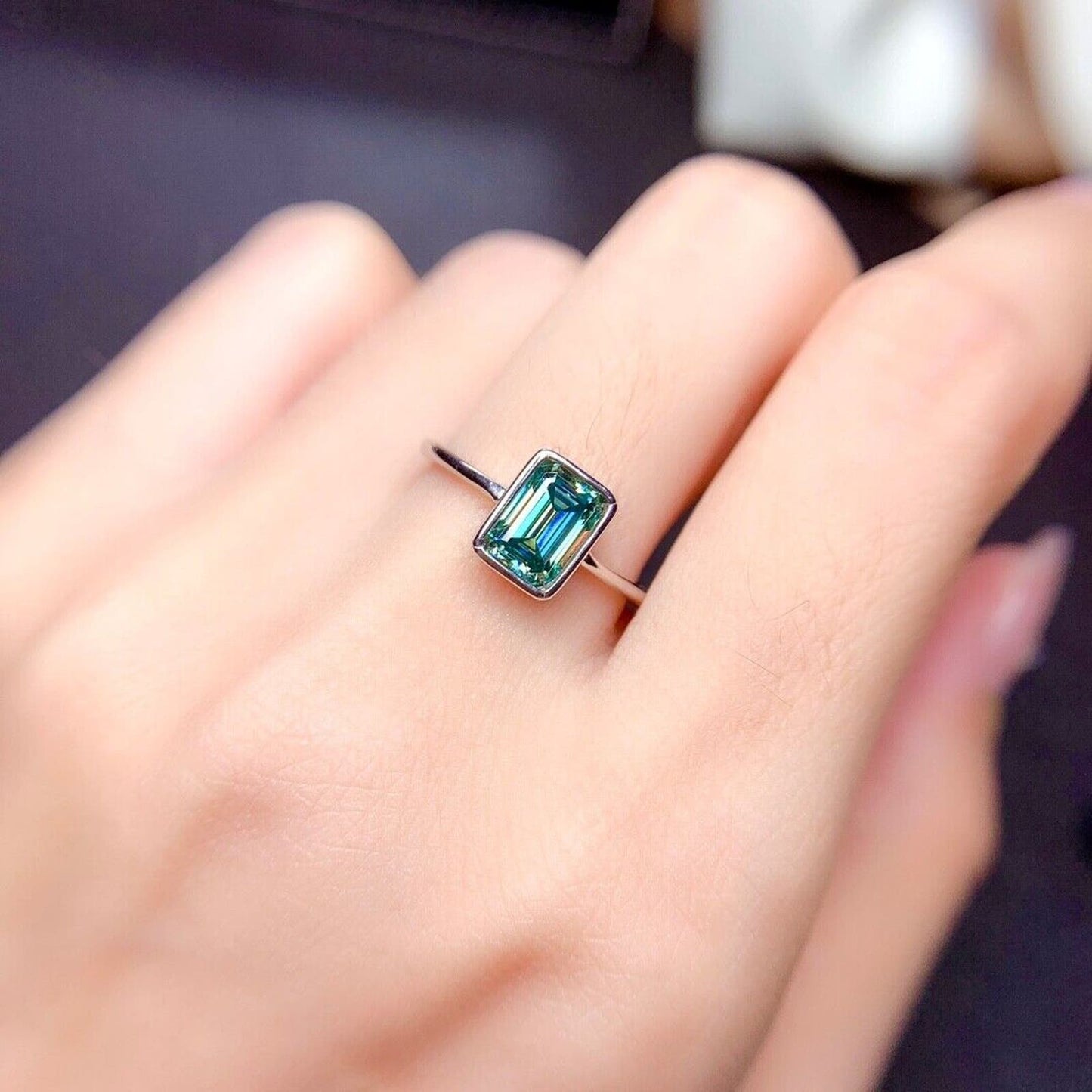Bezel Set Green Moissanite Ring VVS1 1 CT