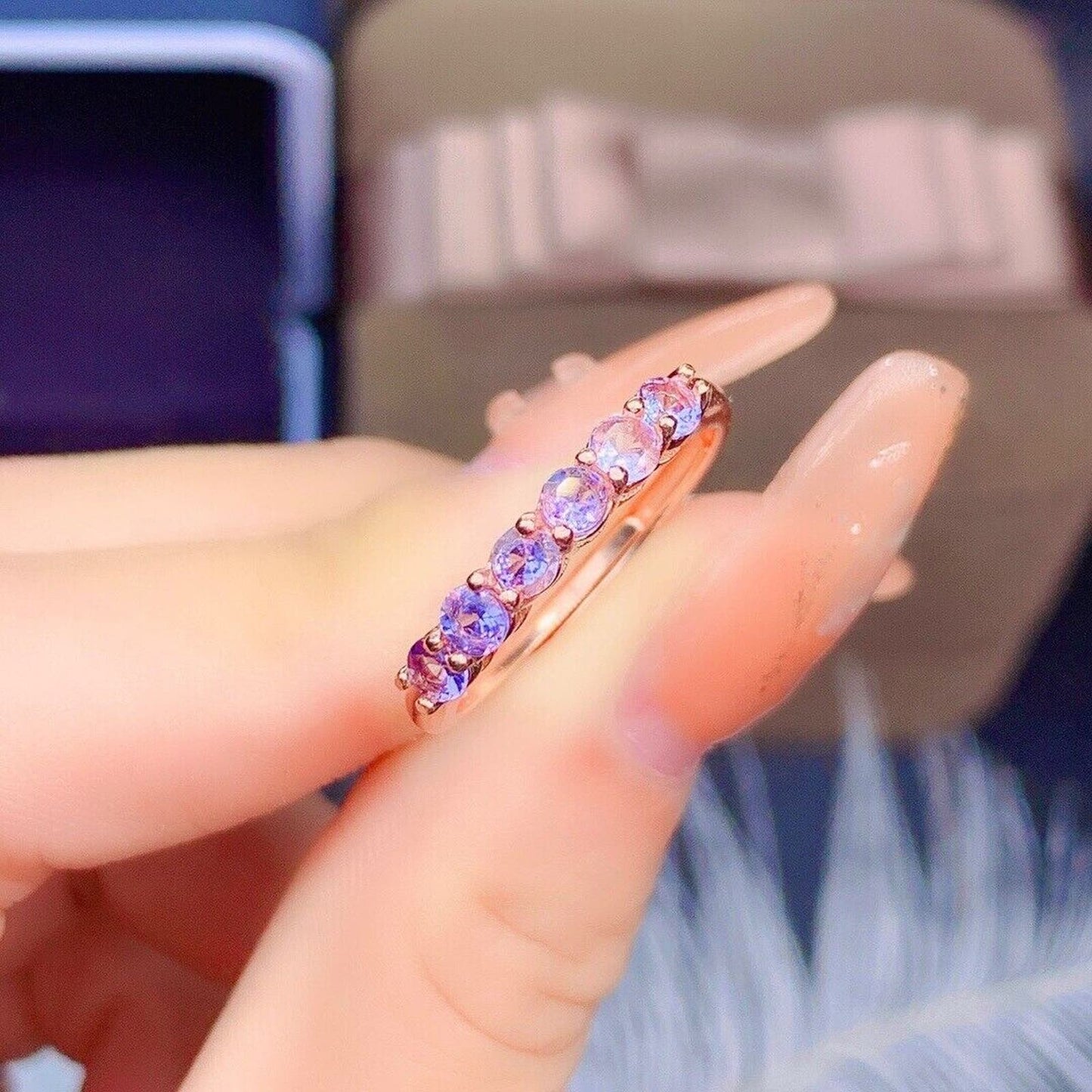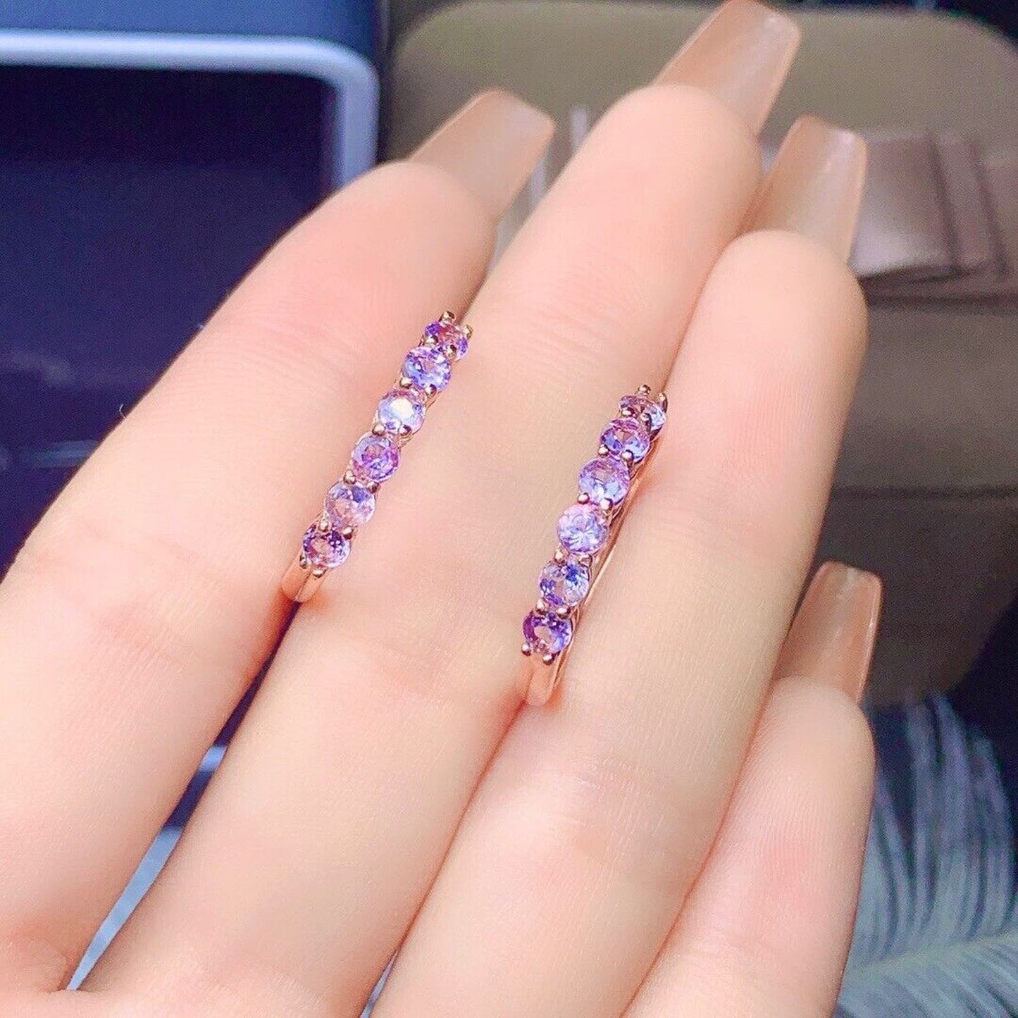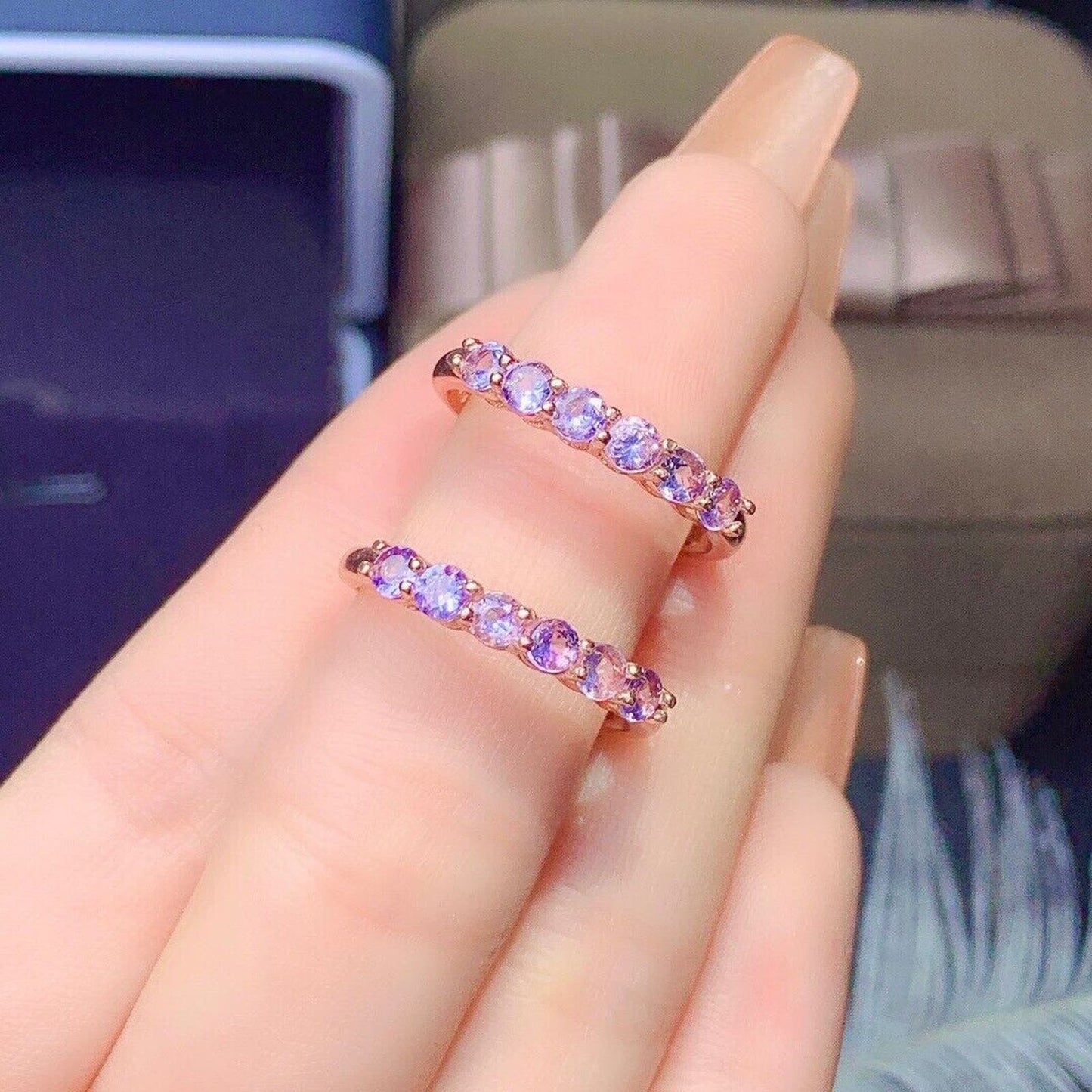 Purple Tanzanite Band Ring 3mm Sterling Silver