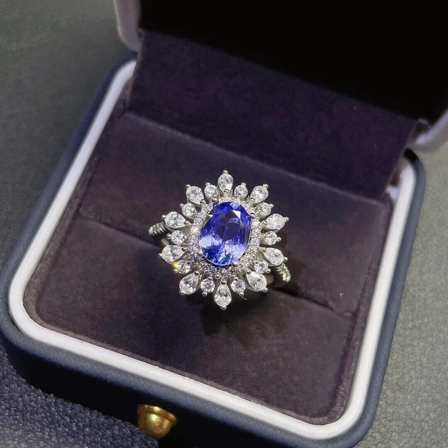 Purple Tanzanite Cluster Statement Ring VVS1 6x8mm