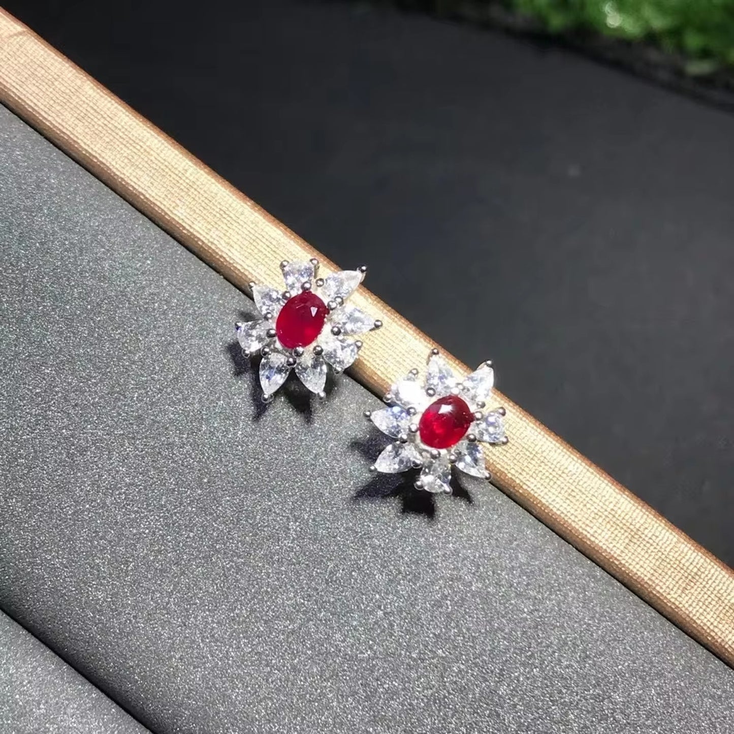 Natural Ruby Stud Earrings, Women's Ruby Cluster Earrings