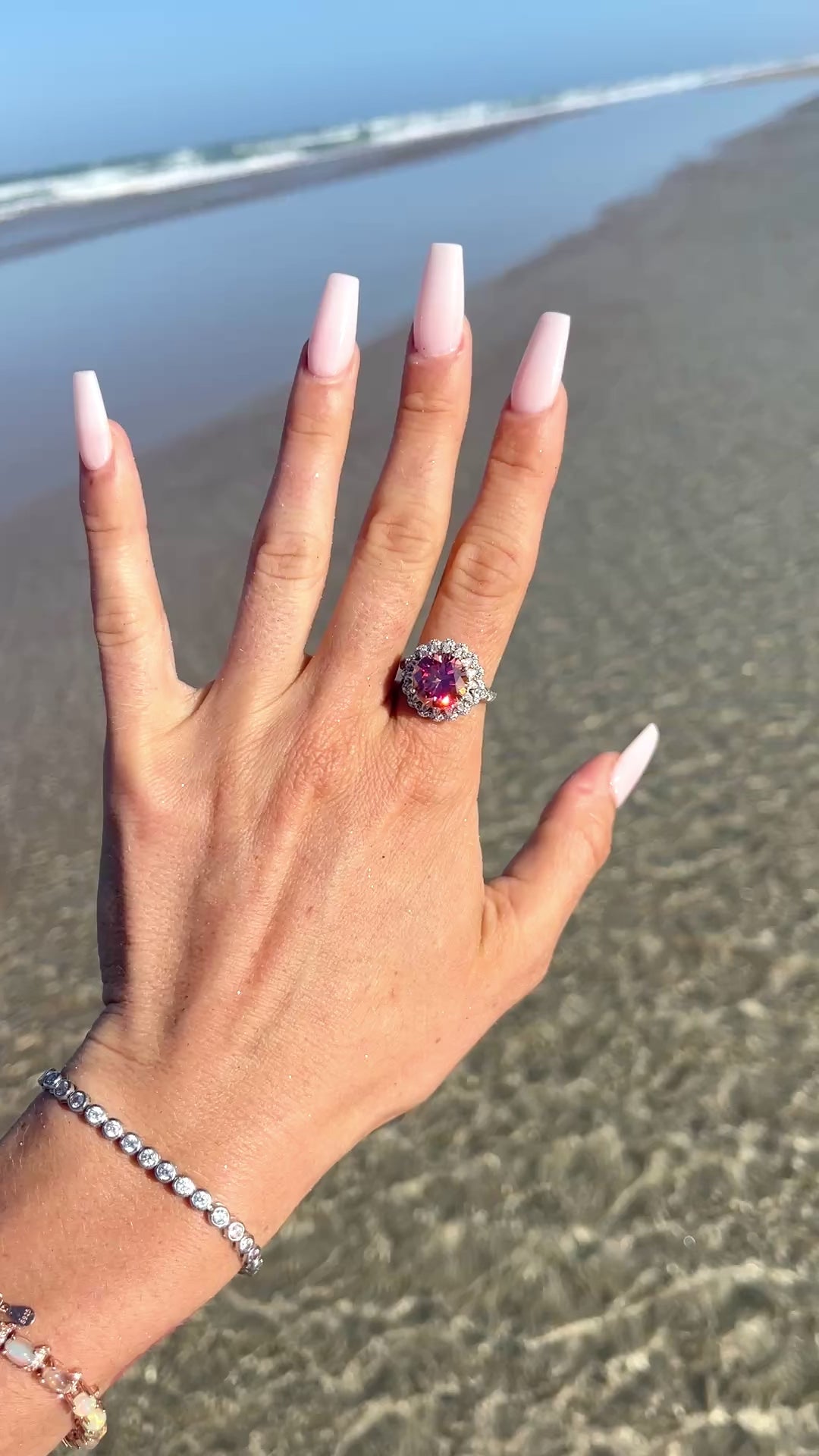 This breathtaking 5CT Round Brilliant Cut Peach Moissanite Ring is the epitome of elegance and sophistication. The lab-created moissanite boasts a VVS1 clarity, offering exceptional brilliance and fire, rivaling that of a diamond.