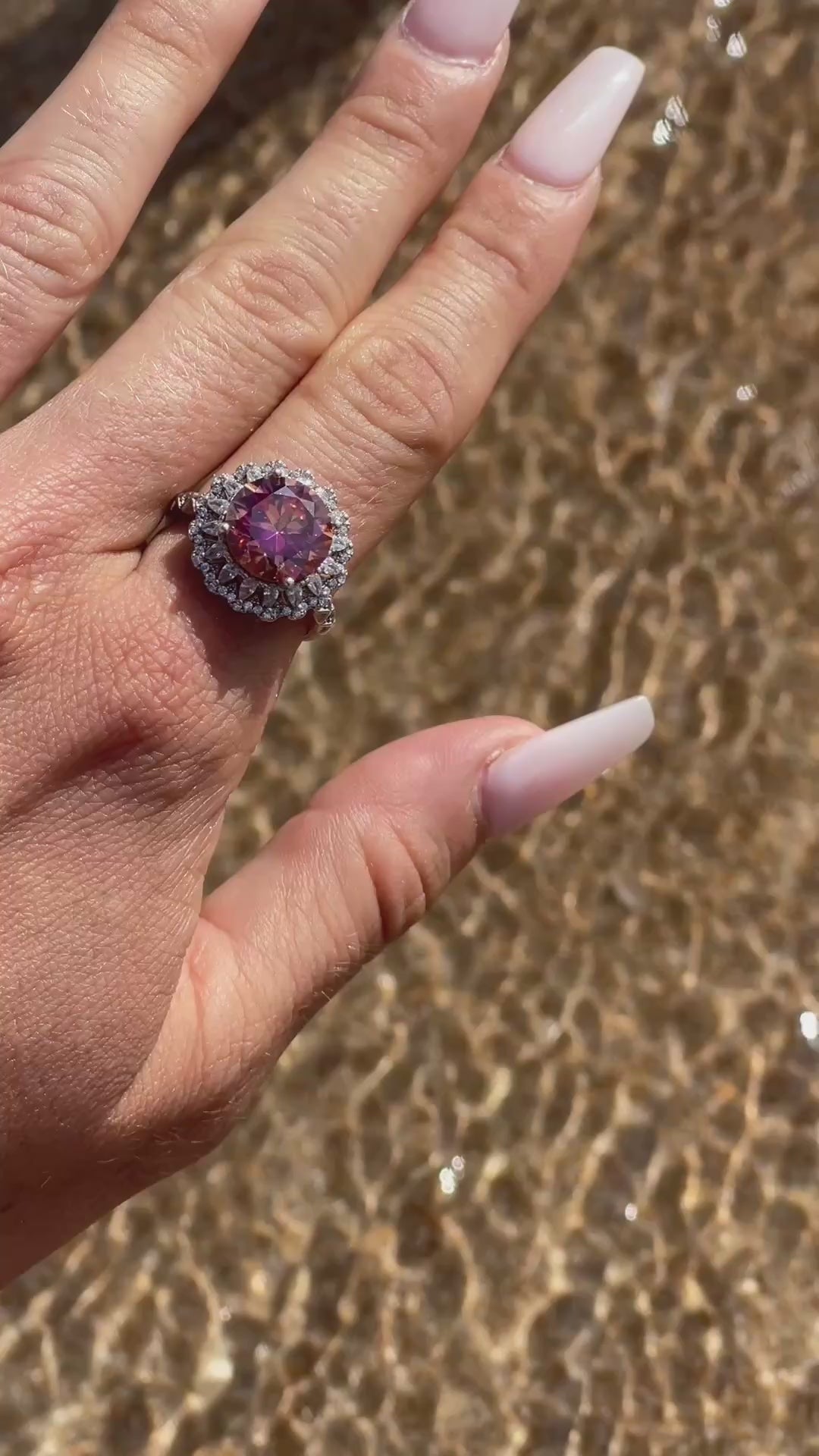 5CT VVS1 Round Brilliant Cut Peach Moissanite Ring