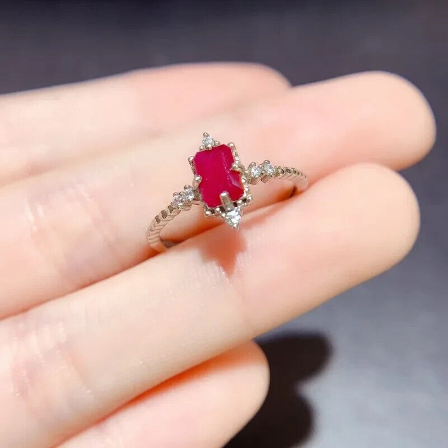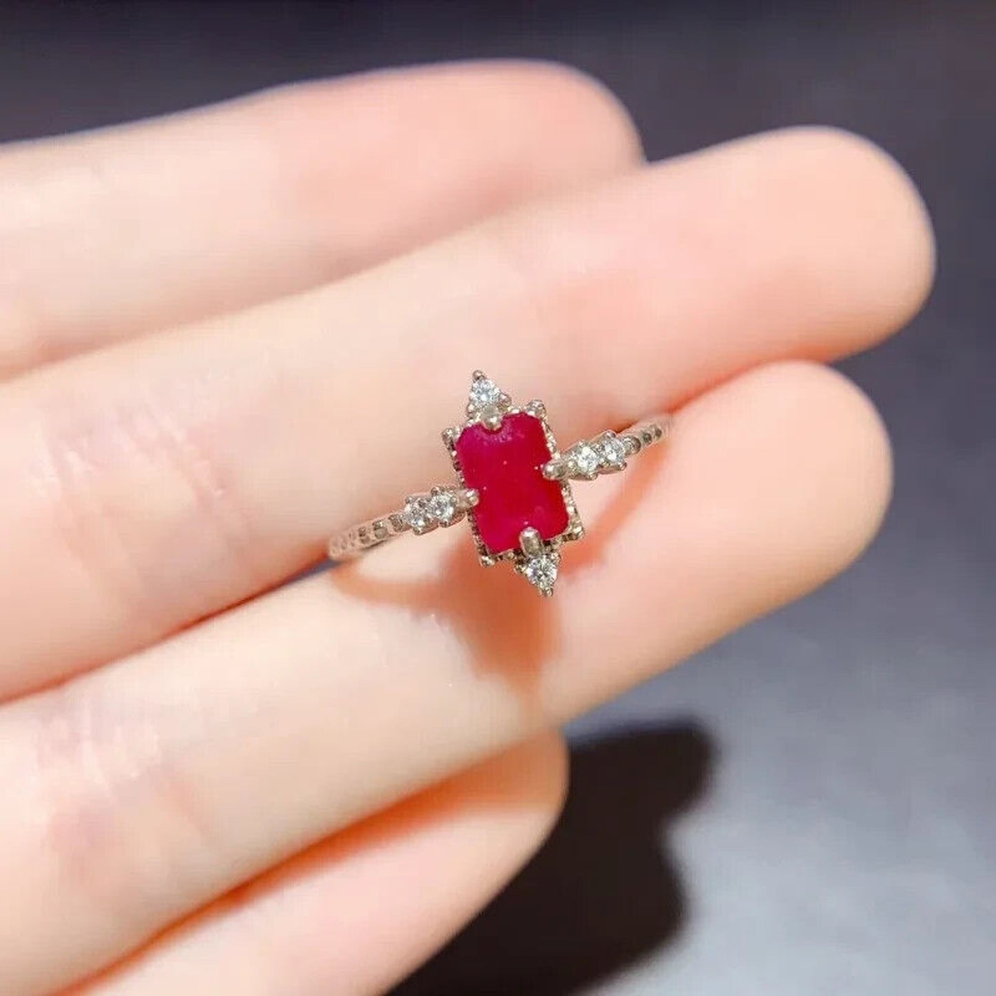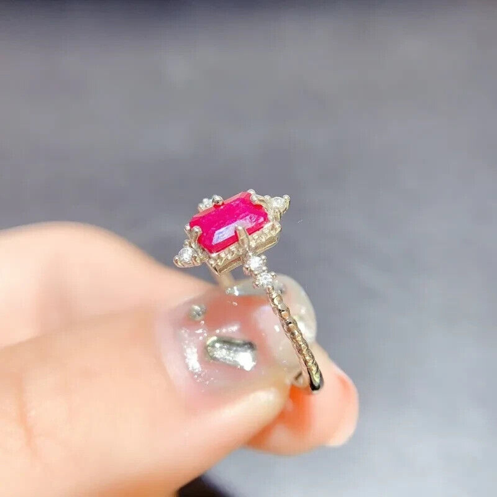 Dainty Natural Ruby Ring, Women's Natural Ruby Ring 4x6mm Sterling Silver