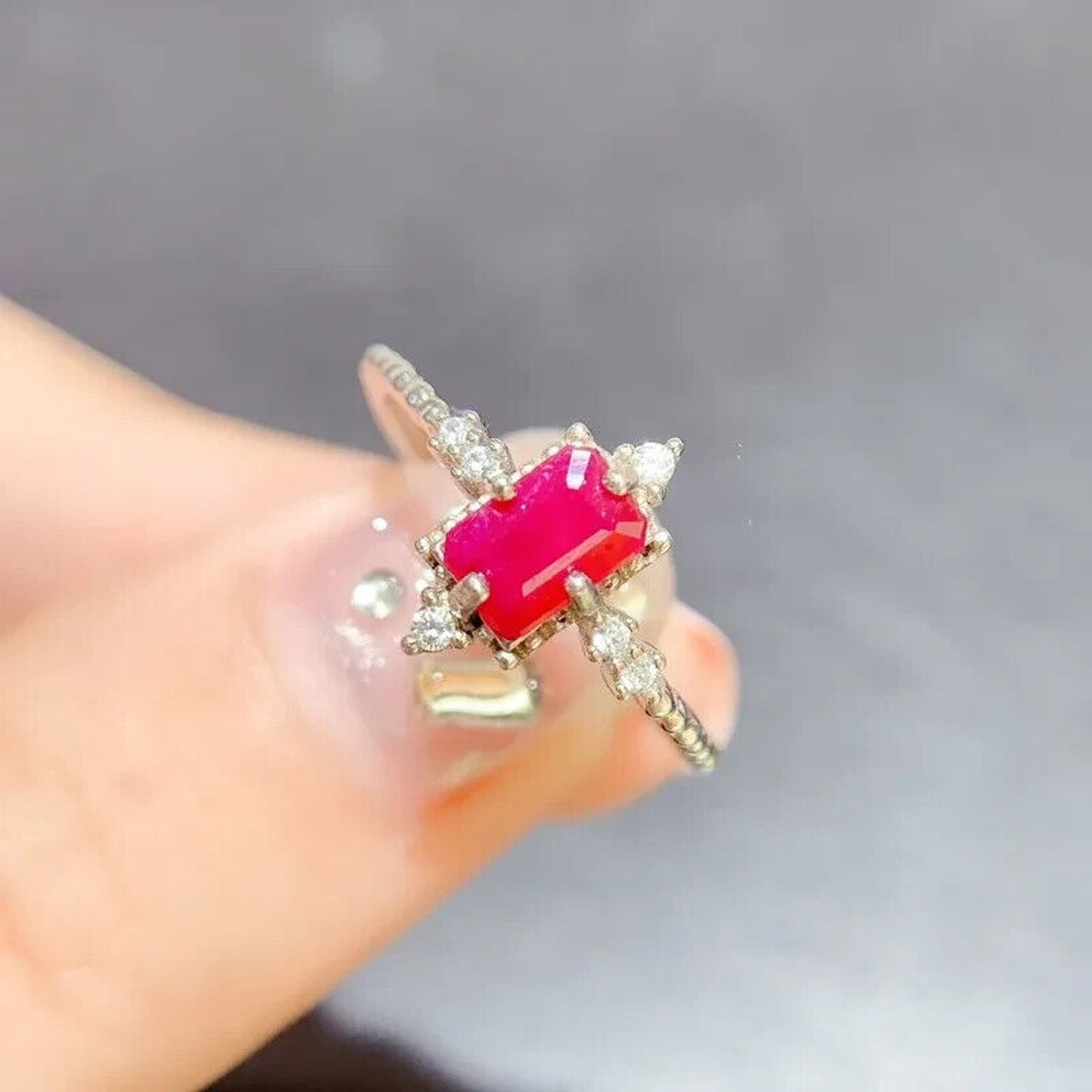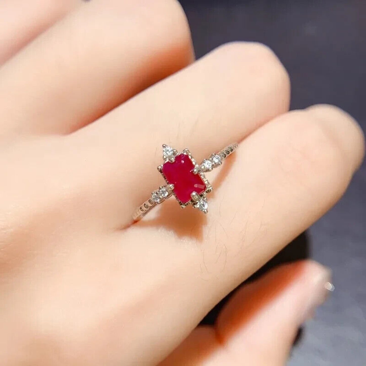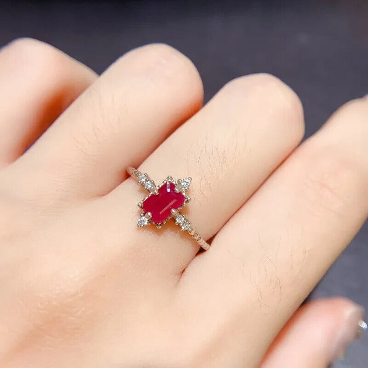 Dainty Natural Ruby Ring, Women's Natural Ruby Ring 4x6mm Sterling Silver
