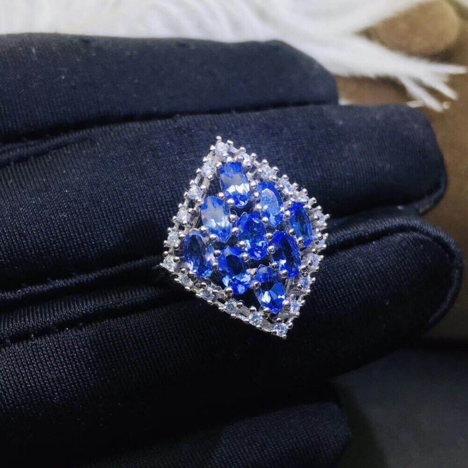 Large Tanzanite Statement Ring – 925 Sterling Silver | Sizes 4–12.5