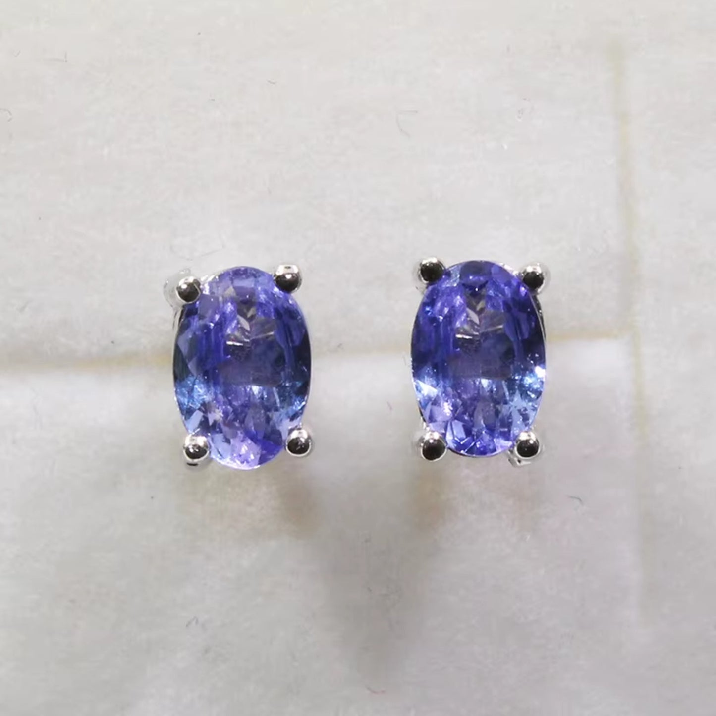 Purple Tanzanite Earrings | 925 Sterling Silver Natural Tanzanite Stud Earrings 4x6mm