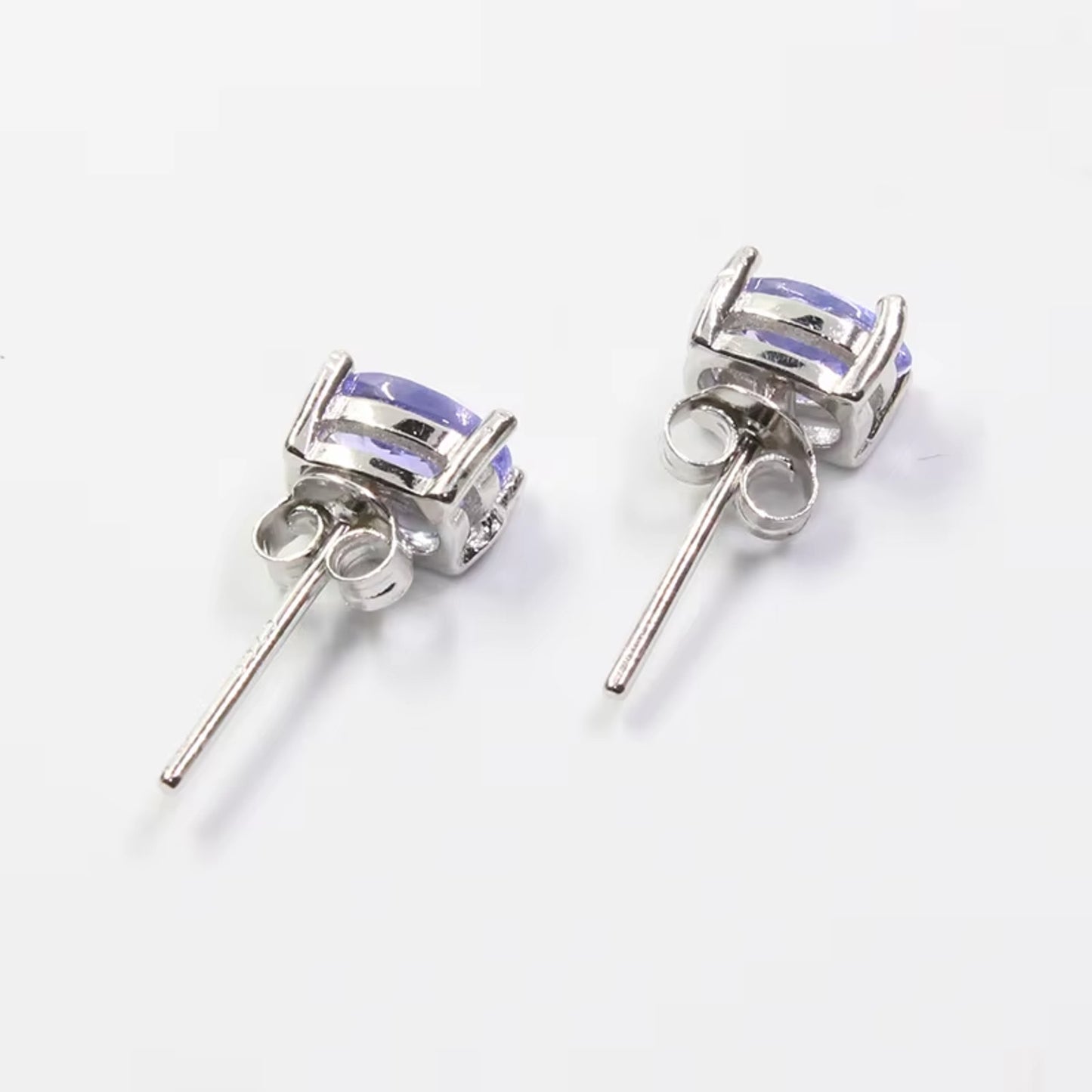 Purple Tanzanite Earrings 925 Sterling Silver, Natural Tanzanite Stud Earrings