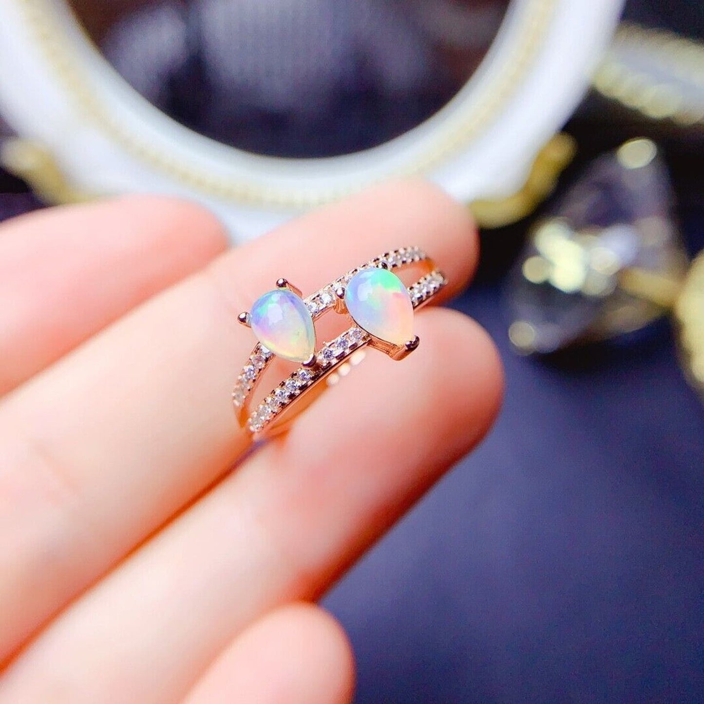 Fire Opal Double Band Ring Pear Cut 4x6mm